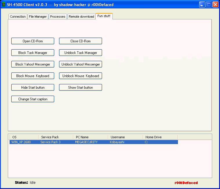 Server Dropped File: c:\WINDOWS\system32\msisvchost.exe Size: 619,543 bytes Added to Registry: HKEY_CURRENT_USER\Software\Microsoft\Windows\CurrentVersion\Run "msisvchost" Data: C:\Windows\system32\msisvchost.exe Tested on Windows XP April 08, 2009MegaSecurity