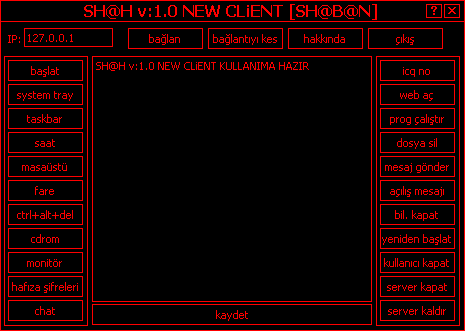 Client: size: 177 KB Server: dropped file: C:\WINDOWS\.DL1 size: 148 KB port: 41626 startup: HKLM\Software\Microsoft\Windows\CurrentVersion\RunServices