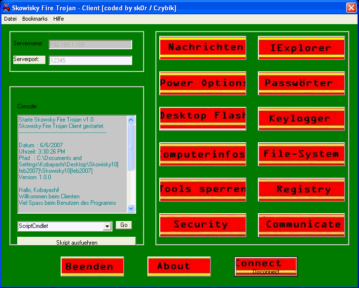 Server: dropped files: c:\WINDOWS\system32\sapi.dll Size: 1,331 bytes c:\WINDOWS\system32\winmain.exe Size: 196,658 bytes startup: HKEY_LOCAL_MACHINE\SOFTWARE\Microsoft\Windows NT\CurrentVersion\Winlogon "Shell" old data: Explorer.exe new data: explorer.exe C:\WINDOWS\system32\winmain.exe tested on Windows XP June 06, 2007MegaSecurity