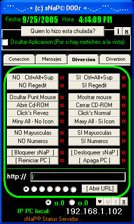 Server: dropped files: c:\WINDOWS\MNETCONEC.COM Size: 1,388,544 bytes c:\WINDOWS\MSLG.DLL Size: 24 bytes c:\WINDOWS\system32\MSLG.DLL Size: 24 bytes c:\Documents and Settings\%user%\Local Settings\Temp\PASSWORDS (Numeracions).DOC .doc port: 23 TCP startup: HKEY_CURRENT_USER\Software\Microsoft\Windows\CurrentVersion\Run "MicrosoftUpdater" data: C:\WINDOWS\MNETCONEC.COM HKEY_USERS\.DEFAULT\Software\Microsoft\Windows\CurrentVersion\Run "MicrosoftUpdater" data: C:\WINDOWS\MNETCONEC.COM HKEY_USERS\S-1-5-18\Software\Microsoft\Windows\CurrentVersion\Run "MicrosoftUpdater" data: C:\WINDOWS\MNETCONEC.COM HKEY_LOCAL_MACHINE\SOFTWARE\Microsoft\Windows NT\CurrentVersion\Winlogon "Shell" old data: Explorer.exe new data: Explorer.exe MNETCONEC.COM tested on Windows XP September 25, 2005MegaSecurity