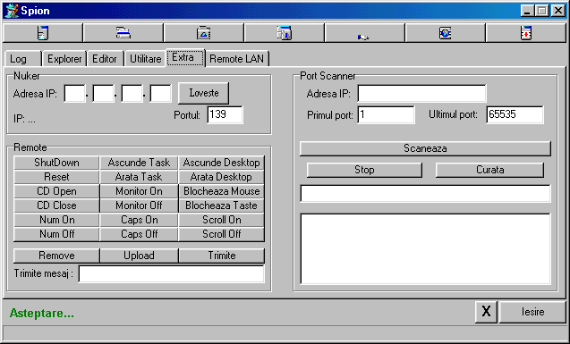 Server: size: 188.416 bytes port: 1981, 1982 TCP startup: HKEY_LOCAL_MACHINE\Software\Microsoft\Windows\CurrentVersion\Run "logger" added: c:\WINDOWS\comcgi.srg c:\WINDOWS\mcgi.iniMegaSecurity