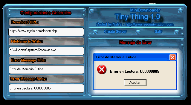 Server: size: 8,704 bytes tested on Windows XP October 25, 2006
