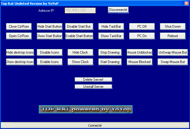 Server Size: 1,299,456 bytes Added to Registry: HKEY_LOCAL_MACHINE\SOFTWARE\Microsoft\Windows\CurrentVersion\Run "svchost" Data: C:\WINDOWS\system32\svchost.exe Port: 666. 6664 TCP Tested on Windows XP September 04, 2008MegaSecurity