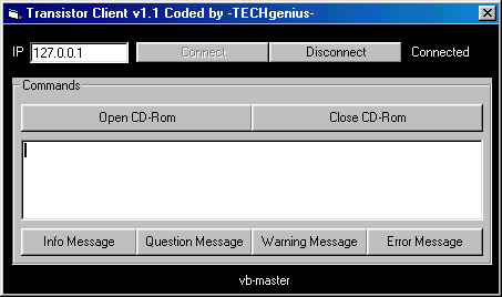 version 1.1: - minor fixes - server is now stealth - added message box control TECHgenius Server: size: 812.032 bytes port: 1234 TCP startup: none
