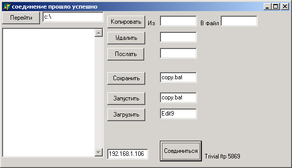 Server: size: 162,015 bytes port: 1234 TCP 5869 UDP tested on Windows XP November 07, 2006