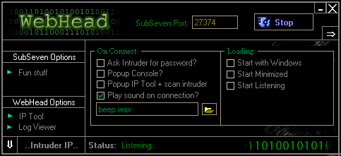 Webhead is Sub7 Fake Server. Made to screw with the lamers trying to screw with you. Theres heaps of these fake servers, most are coded in VB (badly) and don't offer many options. But where others have failed, WebHead will succeed. .:Histroy:. 1/6/2001 - WebHead v1.1 released - Added a heap of stuff since 1.0 plus fixed few small bugs -Took out BioNet part, may add in later if ppl really want it -You can now initialise a chat session with the intruder -You can popup enoying boxes on his screen -Send them a message -You can set fake c: drive contents -Set fake icq accounts -Changed the console so its easier to use -Set on connect options - popup console/prompt for pass/etc -Set loading options start with win/start minimized/etc -Added an Intruder info loger, catches password/icq uin/nick/etc -Made a small log viewer to view and manage your log files -Added an ip tool that can also scan for sub7 -Changed my nickname ;) .:How to use:. Well it's pretty straight forward, but in this scene sometimes even helpfiles for helpfiles are needed soo.. --Just run Webhead then go to the option tabs on the left to setup anything you want. Under Sub7 options you can set what to show them when they try to see your "pc info", you can set the "open windows" to display, and also the connected message they will see. --Under Webhead options you can set weither or not you want to ask them for a password, play a notify sound, and other things like starting it with windows etc. --When everythings set and its sitting there listening away and it suddenley plays the sound and jumps up in front of your face it means thats someones just connected to you and it's time to have some fun. Go to "Tools" to mess with them, or just sit and watch the console gigglin quietly. --That's pretty much it, remember to save logs and especially watch the 'Intruder Information' panel. It will get their icq number, nickname, and also a password they use. *hint* - a hell of a lot of ppl use the same password for all their stuff.. you get their icq account, and you get all their victims >:) Pseudo tested on Windows XP October 25, 2005MegaSecurity