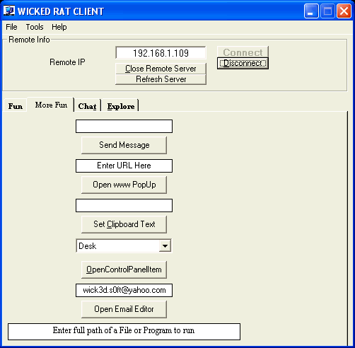 Server size: 90,112 bytes added to registry: HKEY_CURRENT_USER\Software\Microsoft\Windows\CurrentVersion\Run "MyApp" tested on Windows XP May 29, 2007