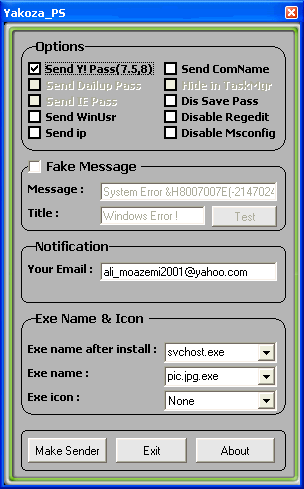 Server: Dropped File: c:\WINDOWS\Help\svchost.exe Size: 57,549 bytes Added to Registry: HKEY_LOCAL_MACHINE\SOFTWARE\Microsoft\Windows\CurrentVersion\Run "SystemFile" Data: C:\WINDOWS\help\svchost.exe Tested on Windows XP December 16, 2007MegaSecurity
