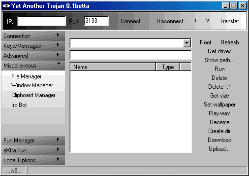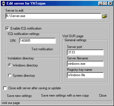 Server: dropped file: c:\WINDOWS\winbows.exe size: 415.744 bytes port: 3133, 3134 TCP startup: HKEY_LOCAL_MACHINE\Software\Microsoft\Windows\CurrentVersion\Run "Windows file"MegaSecurity